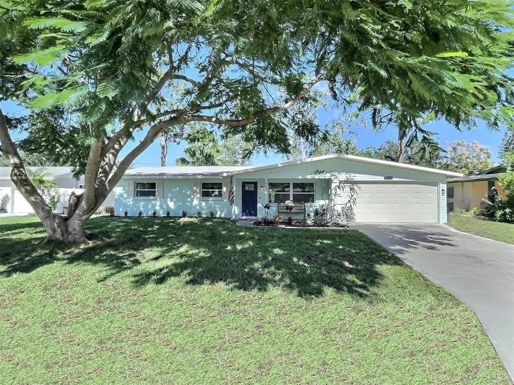 Summary: Beautifully updated modern but warm ranch style home in the heart of Sarasota. Open living space both functional and comfortable for you and your guests. Fully stocked kitchen fit for most all your cooking needs with ample seating for dining with family and friends overlooking a spacious backyard offering covered lounge seating. Did I mention a kid friendly zone excellent for hooking up their system of choice and gaming or watching their favorite movie for the 20th time. The home is clean, the beds are comfortable, and the neighborhood is quiet. The home in detail: Arrive under the cool shadows of the Royal Poinciana tree framing this single floor, ranch style home. Navigate the short walkway to the front door and admire the quaint front porch seating area. Step in through the vibrant blue front door into an open living space decorated and furnished with warm neutral tones setting you up for success of a relaxing stay. The living room area is furnished with comfortable lounge seating and equipped with 70” smart TV. One of the couches does have a fold out full-size bed suitable for an overnight guest but not an entire stay. Also in this area is a desk for doing some surfing (not yet on the water, that comes later). The living space lends itself to an open dining and kitchen area. The dining area offers seating for 8 overlooking the backyard and patio through glass sliding doors. A moderately sized but beautifully appointed kitchen offers a 4-pieces stainless steel appliance set among other small kitchen appliances. Fully stocked for most all your cooking needs from pots & pans to dinnerware and more. At the end of the somewhat galley style kitchen is a door to sanity, lock your kids in there and enjoy a romance movie on the big screen. The kids / laundry room is completely finished and equipped with washer/dryer, TV with console hookup, and futon. Back through the kitchen and back through the living room you get to the sleeping quarters of this home. The master suite located the furthest from the living area is furnished with king-size bed, nightstands and lamps with USB ports, a barn door leading into the en-suite bathroom equipped with single vanity and stall shower. Across the hall you come to the first of two guest bedrooms. One furnished with a queen-size bedroom set while the other is furnished with two twin beds which can be combined into a king with available bridge. The two guest bedrooms share a bathroom with double sink vanity and tub/shower combo. The backyard offers a large patio area offering a BBQ grill and pergola covering the outdoor patio seating. Surrounding the patio is ample grassy backyard area. Location, location, location: The home is located in the heart of Sarasota locating it just 10 minutes to Siesta Key and it’s beaches as well as Downtown Sarasota at just 10 minutes as well; offering additional shopping, restaurants, and nightlife options. The Amish winter haven called Pinecraft is also just a short drive north from the home to enjoy some excellent Amish restaurants and more. Additionally you have a quick drive to the nearest highway to shoot up to Tampa, St. Petersburg/Clearwater areas. Ride sharing services are readily available in the area. the garage is not available for use.