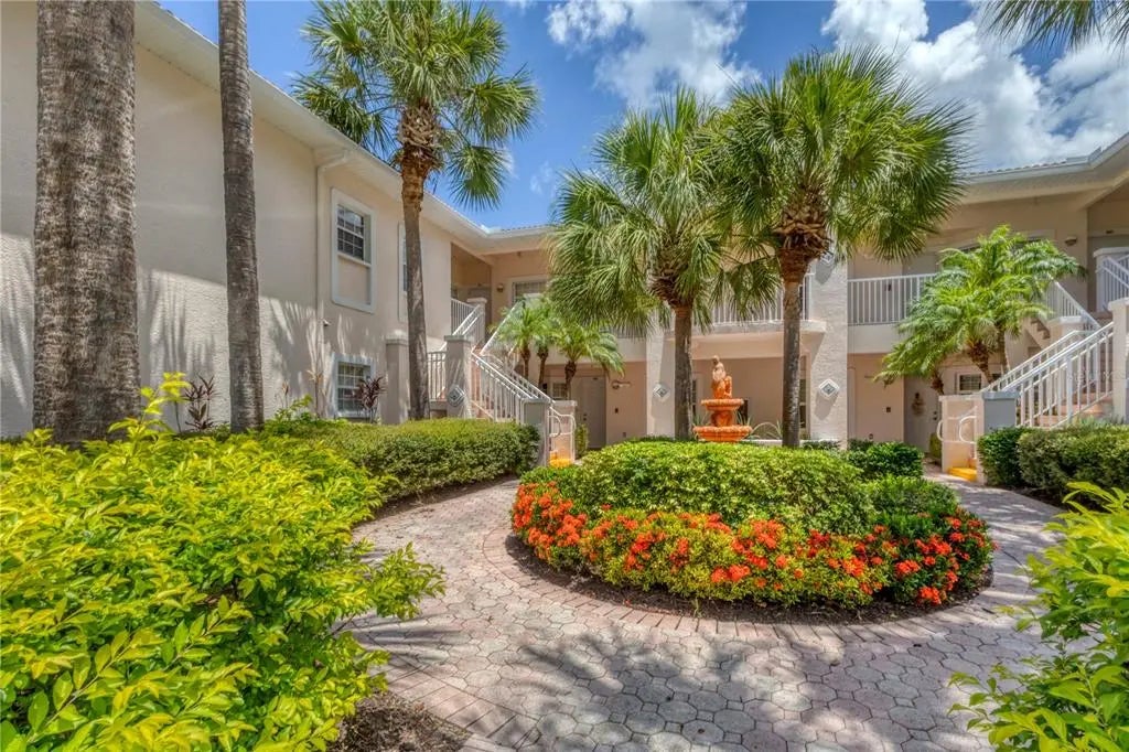 Step into a world of tranquil luxury at Plaza de Flores, an exclusive gated community that creates a serene lifestyle. Nestled in a coveted corner of this picturesque neighborhood, discover a 2-bedroom, 2-bathroom sanctuary offering an open layout that exudes Florida elegance and comfort. Upon entering the condo, you are greeted immediately by the view of a stunning screened-in lanai and tranquil pond - the perfect spot to savor your morning coffee in the mornings or a glass of wine in the evenings. The seamless flow from the kitchen to the charming dining nook with dry bar and into the inviting living room creates an atmosphere that beckons you to unwind and entertain in style. Designed for utmost privacy, the bedrooms are strategically positioned on opposite ends of the condo. Your lavish primary suite beckons with sliding glass doors to the lanai, natural light, dual walk-in closets and an en-suite primary bathroom featuring dual sinks, and a separate water closet with standing shower. The versatile second bedroom has a space-efficient layout with a sleeper-sofa, desk, hutch, and closet. The second bathroom offers the convenience of both a shower and a bathtub. Additionally, the there is an in-unit washer-dryer laundry closet. Outside, immerse yourself in the meticulously maintained grounds adorned with mature landscaping, tranquil ponds, and soothing fountains. Enjoy resort-style amenities including a geothermal heated pool, in-ground spa, gazebo over a lake, tennis court, and a charming clubhouse equipped with a fitness center, card room, library, kitchen, and flexible gathering space. Perfectly situated in proximity to shopping destinations, one mile from The Legacy Trail, and under 5 miles to famed Siesta Key, Plaza de Flores offers an enviable location, creating a lifestyle of both comfort and convenience. Don't delay, this remarkable haven is awaiting you. To see updates to furniture or linens, video available upon request.