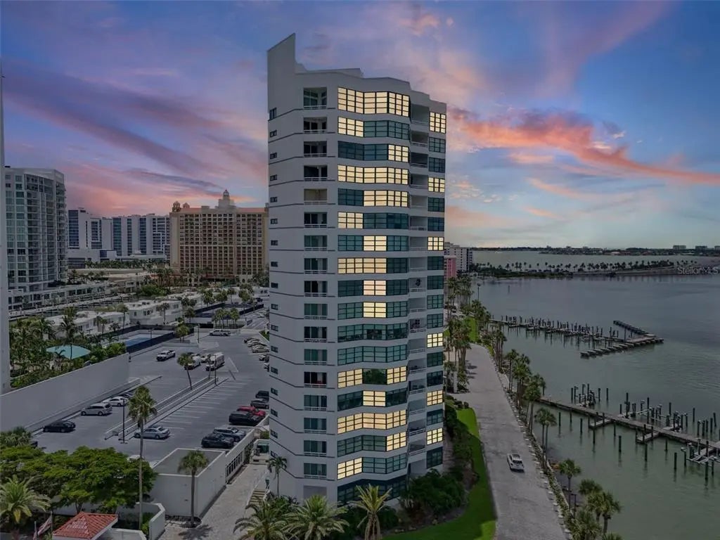 A rare opportunity to own one of Sarasota’s most coveted addresses. This highly desirable corner residence on the 10th floor of Condo on the Bay offers uninterrupted, forever views from every room. From sunrise over Sarasota Bay to fiery Gulf sunsets, your panorama will never be blocked thanks to the building’s premier bayfront position. This fully reimagined residence blends modern elegance with timeless design. Twenty four inch porcelain tile sweeps throughout, setting the stage for a chef’s kitchen that is as striking as it is functional featuring custom cabinetry with iron-framed glass front display cases, sleek quartz countertops, and a full suite of Wolf and Sub-Zero appliances. Hurricane-rated sliding glass doors frame the water and open to two private balconies for alfresco dining against a stunning backdrop. The floor plan offers true privacy, with the primary suite showcasing wraparound bay views, a spa-inspired bath, and generous closets. The guest suite has been redesigned, and features a luxurious en suite bath and walk-in closet, creating a second private retreat. Every fixture, finish, and surface has been hand-selected for both beauty and longevity, delivering a residence that is as functional as it is breathtaking. Set within one of Sarasota’s most prestigious gated communities, enjoy a resort-style pool, fitness center, tennis & pickleball courts, boat slips, concierge services, and a beautifully appointed events room within the tower, complete with a full kitchen for hosting private gatherings. Added conveniences include garage parking and on-site electric car charging stations, ensuring modern comfort meets sophisticated living. All of this, mere steps from the cultural heartbeat of downtown Sarasota, fine dining, galleries, and the world’s finest beaches.