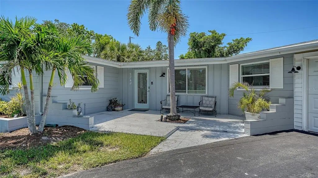 Under contract-accepting backup offers. This turnkey-furnished, three-bedroom, two-bathroom caged pool home with a study/den/office, and a one-stall garage is three blocks from Sarasota Bay in Whitfield Estates. The current owners have used it as a vacation home and have also rented it for the past four years, averaging $20,000 each year in rental income. They do have a rental booked for February and March of 2026 for $12,000 total. You, as the new owner can accept this lease and the rental income or please notify us that you do NOT want it, and we will cancel the lease for you. Built in 1962 with an effective date of 1990 from previous owner's renovations, it has a seven-year young roof, a four-year young HVAC system, the caged pool which has a four-year young solar pool heater, the flooring and baseboards are three-years young and the refrigerator and dishwasher are two-years young. The hot water heater is three-years young, and the house has all newer vinyl windows and sliding glass doors, which were done four years ago. The pool area is caged and the pool has a two-year new electric heater with a five-year warranty. The solar panel heating system is there, but is non-operational. The entire rear yard area is WHT PVC fenced with two privacy gates. There is ample driveway parking space, plus a parking pad next to the one-stall garage, and also on-street parking, There is also a 11 x 11 non-HVAC storage room attached to the home behind the side patio. The Primary Suite has dual sinks, a jet-tub and shower combo, and a walk-in closet. Both the other two bedrooms have built in closets, and the second bathroom has a tub/shower combination. The second bedroom has sliding glass doors out to the side yard of this one-third acre estate property. Whitfield Estates has no homeowner's association or association fees and this is not a deed-restricted neighborhood. It does adhere to Manatee County rules and regulations, concerning leasing and pets. Flood insurance is not required. Homeowner and wind insurance is $4,400 annually. Monthly utility and maintenance costs are on average: FPL is $250. Manatee County water, sewer, trash, recycling is $200 to $300 depending on the pool. Pool care is $135 and lawn care is $100.