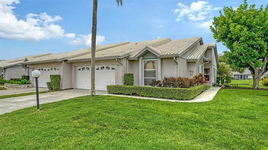 CRESTWOOD VILLAS!! GREAT LOCATION!! Lovely Re-modeled 3BR/2BA turn-key furnished, two car garage end unit with beautiful lake view in a maintenance free community. This home features an open floor plan, Pergo wood plank flooring, with lots of great natural lighting from the end unit windows facing west and the sliding glass doors out to the porch plus a large lanai offering you great sunrise and nature views looking out to a large lake. All the units in Crestwood Villas are getting new roofs as the contract is signed and paid in full. You will find impressive granite counter tops in the kitchen and in the guest bath. The generously sized kitchen features, natural wood color cabinets, a stainless-steel appliance package, pantry closet, and eat-in area. There are three sliding glass doors allowing direct and convenient step out to your covered, screened in porch from the Great Room and the Kitchen. This four-season area includes a new dining table plus four chairs, a buffet on wheels, plus two cushioned chaises all on this private lanai with your tropical Areka palms. The vaulted ceiling in the Great Room allows for optimal space and features a couch, two comfortable swivel chairs, a wall buffet table with bar along with a low entertainment center all opening to the Dining Room that features a cedar wood 4-8 person dining room table (with two leaf’s) including 4 chairs and a matching oversized buffet with storage for China. Six Ceiling Fans are featured throughout the home and the villa has a security system in place. The Primary oversized bedroom suite includes a king-sized bed, sitting area with leather couch and a large walk-in closet. The primary bathroom has double vanities, spacious linen storage closet, and a separate private shower area. The guest bedroom features twin beds and a desk with a bookcase. The third bedroom is a flex room with a large electric lounger sofa, built-in professional desk, tv, computer space and large storage closet. The laundry room has a Speed Queen Washer and Dryer with twin cabinets above for lots of storage. The newly painted two car garage offers you lots of storage with a wall of cabinets plus a separate cabinetry and peg board. This lovely community has many amenities such as the Geo Heated Thermal pool, clubhouse and tennis and pickle ball courts. Crestwood Villas is located near a beautiful park, lots of shopping and restaurants are close by and you are just minutes to the award-winning Siesta Key Beach!! Schedule your private showing today!