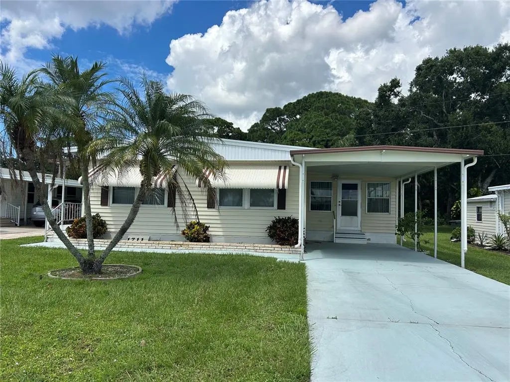 Awesome location - In dog allowed area - Beautiful backyard view of wooded area. Brand new roof on this home installed December 2024! Great open floor plan, roomy Liv Rm & Din Rm flooring is newer - windows have been replaced, well cared for, large lania, fenced back yard, working kitchen - so much to like about this property. Everything stays except personel items & small table in Living Rm. Golf cart does not stay. Tri-Par Estates is a 55+ community in which you own your home and the land. Park fee of $1,648.00 a year is part of the property taxes paid once a year, includes Frontier internet, cable also trash. There is a large pool, mini golf, laundry facilities, fitness room, clubhouse, and many activities to enjoy. Just minutes to the airport and with many other necessities nearby like hospitals, shopping, restaurants and more. Airplanes & jets do fly over Tri Par Estates. Certainly a property to consider