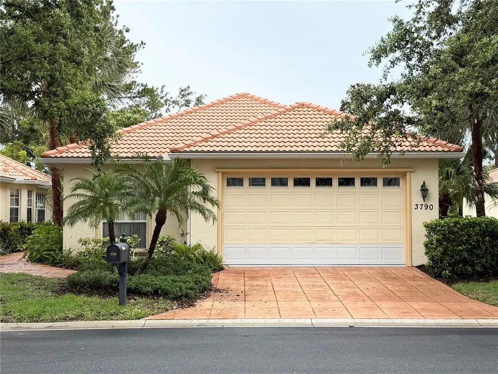 This beautiful free-standing villa is located in Woodmere at Jacaranda. This 55+ community is geared towards a relaxed lifestyle in this maintenance-free home. Consisting of 3 bedrooms, 2 baths and a 2-car garage. Home has an open floor plan, lg kitchen with corian countertops, lots of cabinets and great counter space. Master suite includes a large bathroom with double sinks, large walk-in closet and a large walk-in shower. Additional upgrade includes high ceilings and crown molding. Also includes nice spacious lanai to enjoy your morning coffee. AC new in 2022. Includes a transferable 10 yr warranty on parts and labor. Monthly fees include gated security, water/sewer/trash, pest control, landscaping, A/C is checked twice a year, windows maintained and cleaned yearly, roof/walkway cleaning bi-yearly. Roof is covered by HOA leaving owners only responsible for inside structure and contents. Woodmere at Jacaranda is a premiere community offering all the conveniences of retirement living. This beautiful home on the corner of Tamiami and Jacaranda in a premium location, close to shopping, dining, professional offices and a short drive to the Gulf Beaches and Historic Downtown Venice.
