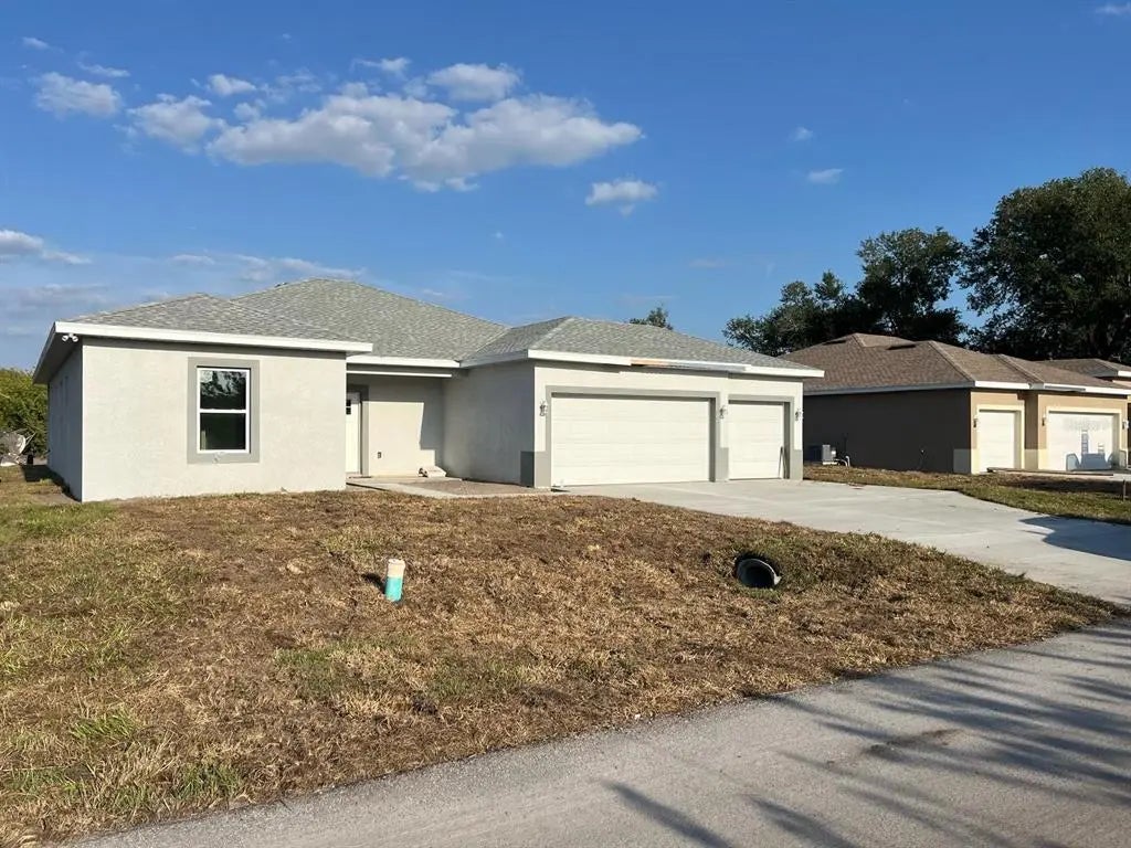 QUICK MOVE-IN!! Welcome to your dream home in North Port! This modern new construction home offers 4 spacious bedrooms and 3 luxurious baths. As you step inside, you'll be greeted by a stunning open floor plan. The exquisite earth toned porcelain tile flooring flows throughout the entire house and is complemented by recessed lighting that enhances the contemporary style. The gourmet kitchen is a chef’s delight, featuring elegant quartz countertops, and solid wood soft-close shaker cabinets. A large pantry ensures ample storage, while stainless steel appliances add a touch of sophistication. Retreat to the primary bedroom, which along with the guest bedroom, includes a spa-like en-suite bath. Experience relaxation in the stunning open walk-in shower, complete with gorgeous porcelain tile. The home's thoughtful design includes en-suite baths for 3 of the 4 bedrooms, ensuring comfort and privacy for guests. This home does come complete with hurricane impact windows. Water and Sewer gravity provided by City of North Port. Run before it gone!! Equal Opportunity Housing.